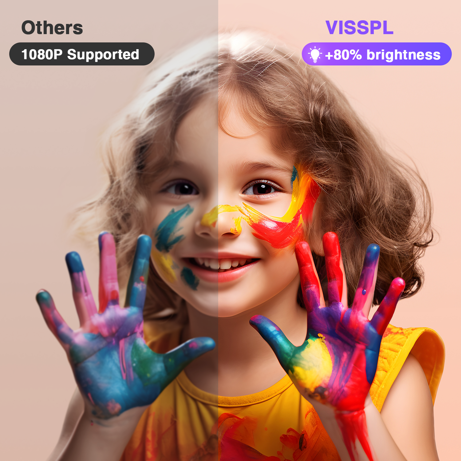 | 【Full HD 1080P & Intelligent Eye Protection】VISSPL 2025 mini projector supports 1080P Full HD resolution with advanced LCD light source technology, vivid colours, sharp images and immersive visual experience. Equipped with low blue light eye protection mode to reduce the stimulation of harmful light on the eyes, long time watching is not easy to fatigue, especially suitable for children's Internet class or family movie watching! (Recommended to use in a darker environment for better results) |