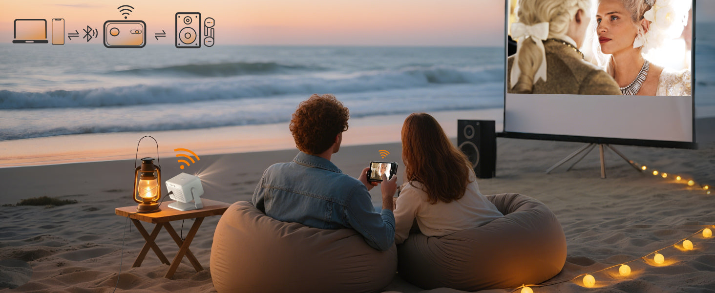 【Zero-Lag WiFi 6 & Bluetooth 5.2】Mini Projector with Wifi and Bluetooth combining cutting-edge WiFi 6 and Bluetooth 5.2 for ultra-stable, buffer-free 4K/HD streaming.Bluetooth Projector intelligently switches between high-quality projection and instant speaker mode, maintaining perfect synchronization between audio and video. Engineered for reliability, WiFi Projector enables flawless smartphone to big screen projection for lag-free gaming and cinema-smooth movies.