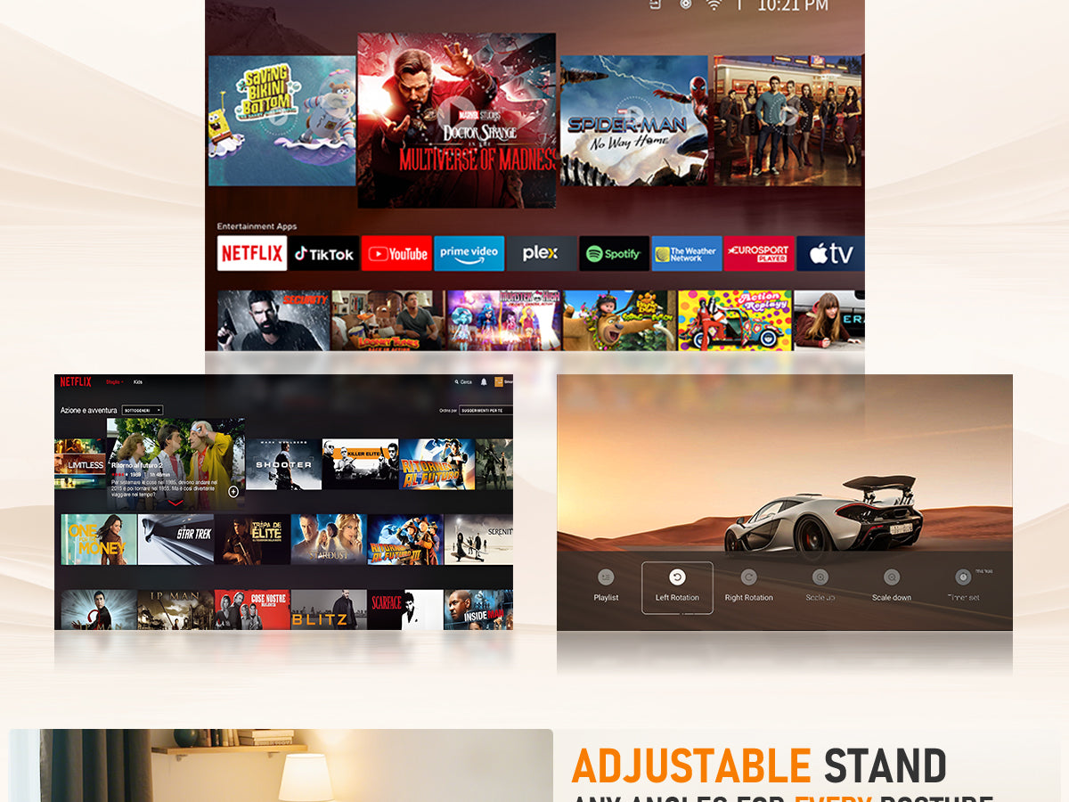 【Officially Netflix Certified Projector ,Cinema-Quality Streaming】Officially certified Netflix projector comes pre-installed with Netflix/YouTube/Prime Video and other Hollywood-licensed platforms, completely eliminating the risk of black screens from pirated systems. Smart projector combines premium streaming, theater-grade 4K visuals, immersive audio, and hassle-free setup in one certified device. VISSPL projector- the perfect gift for movie enthusiasts who demand genuine streaming quality.